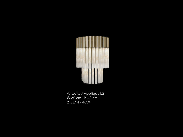 Afrodite, elegante collezione di lampadari con pendagli in cristallo. Finitura metallica disponibile in diversi colori.