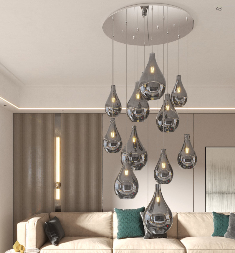 Collezione di lampade a sospensione composte da una o più gocce in vetro soffiato.
