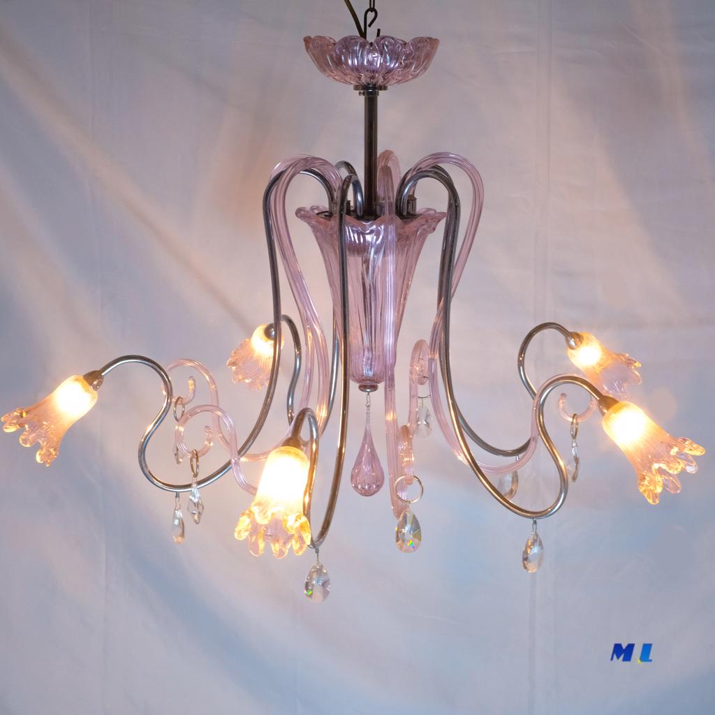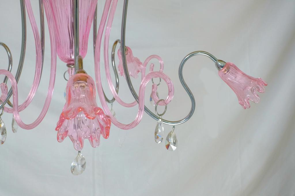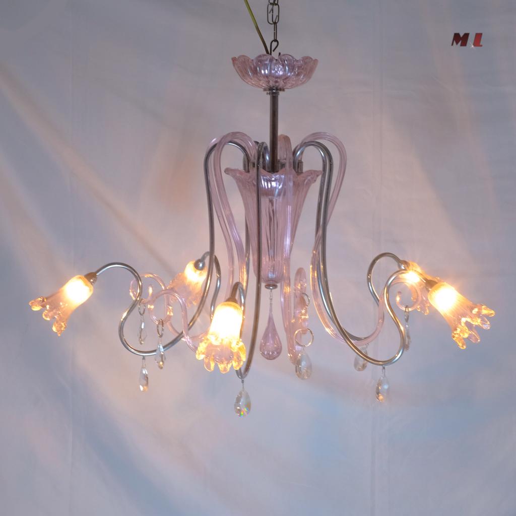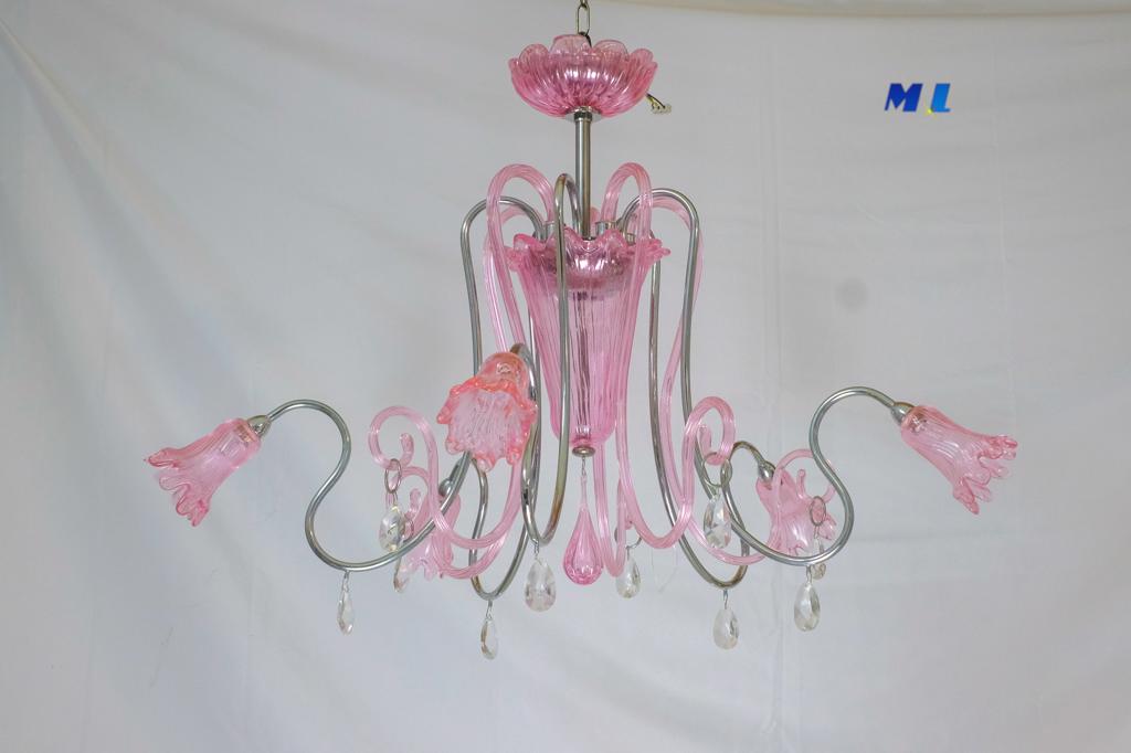 Elegante lampadario di Murano dalle linee naturali in colore ROSA acceso
