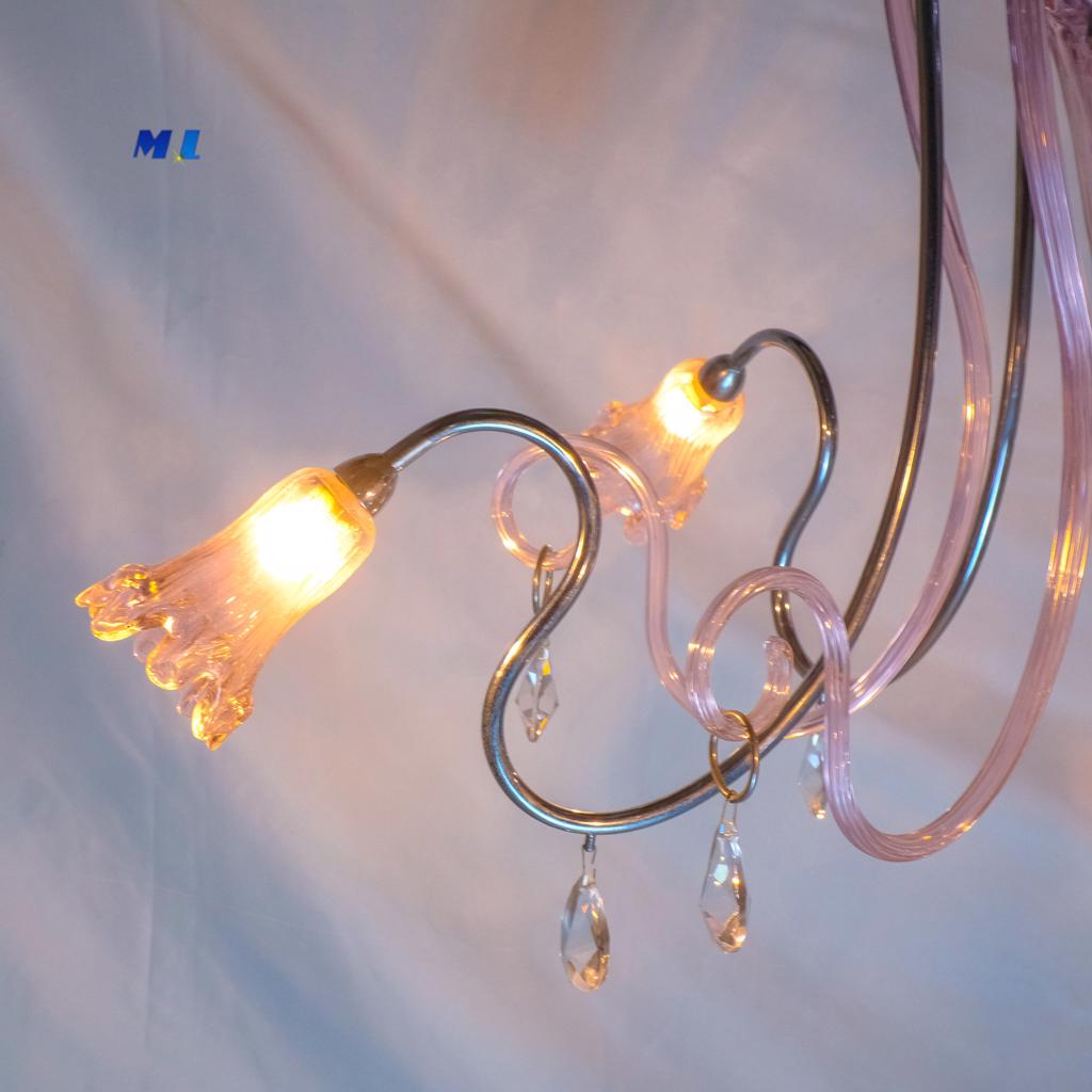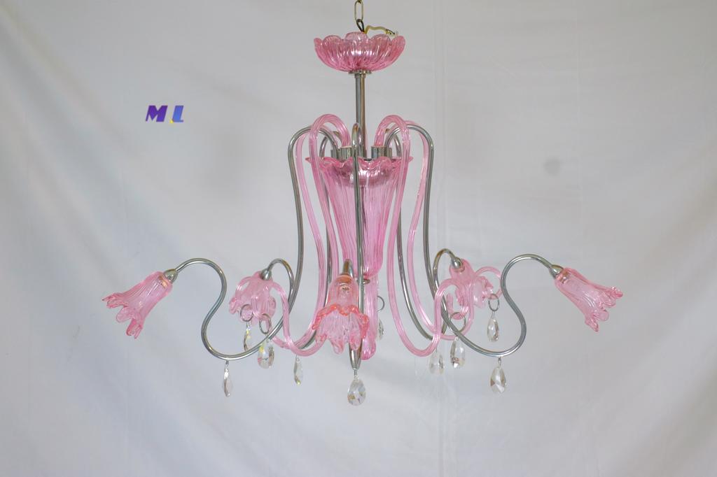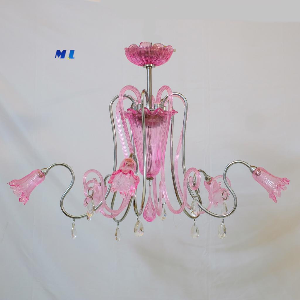 Elegante lampadario di Murano dalle linee naturali in colore ROSA acceso