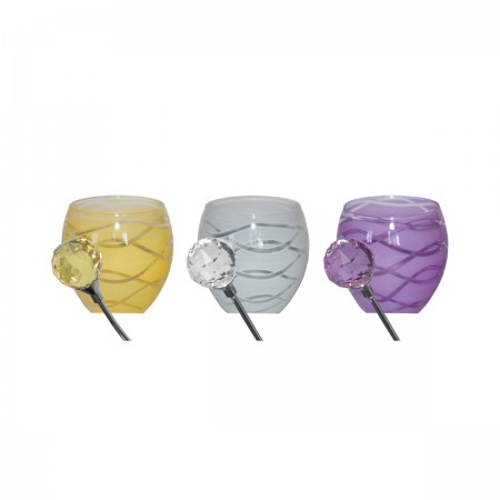 Collezione con diffusori in vetro decorato su montature in metallo cromato con puntali in cristallo.