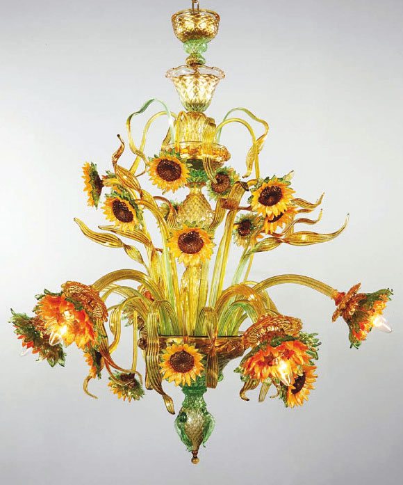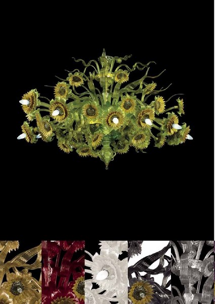 Meravigliosa Collezione di Lampadari e Coordinati in vetro soffiato di Murano e colori in pasta lavorati a Mano, ispirata ai celebri Girasoli di Van Gogh.