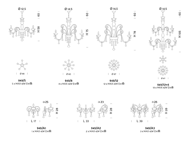 • Lampadine: E14 – max 42W