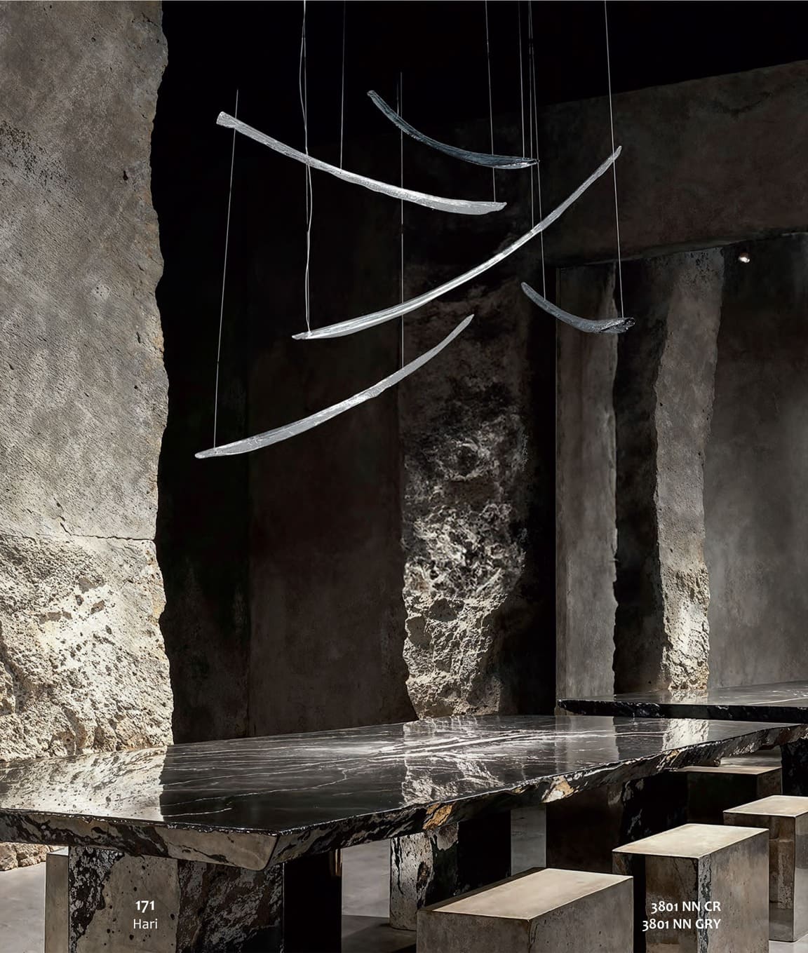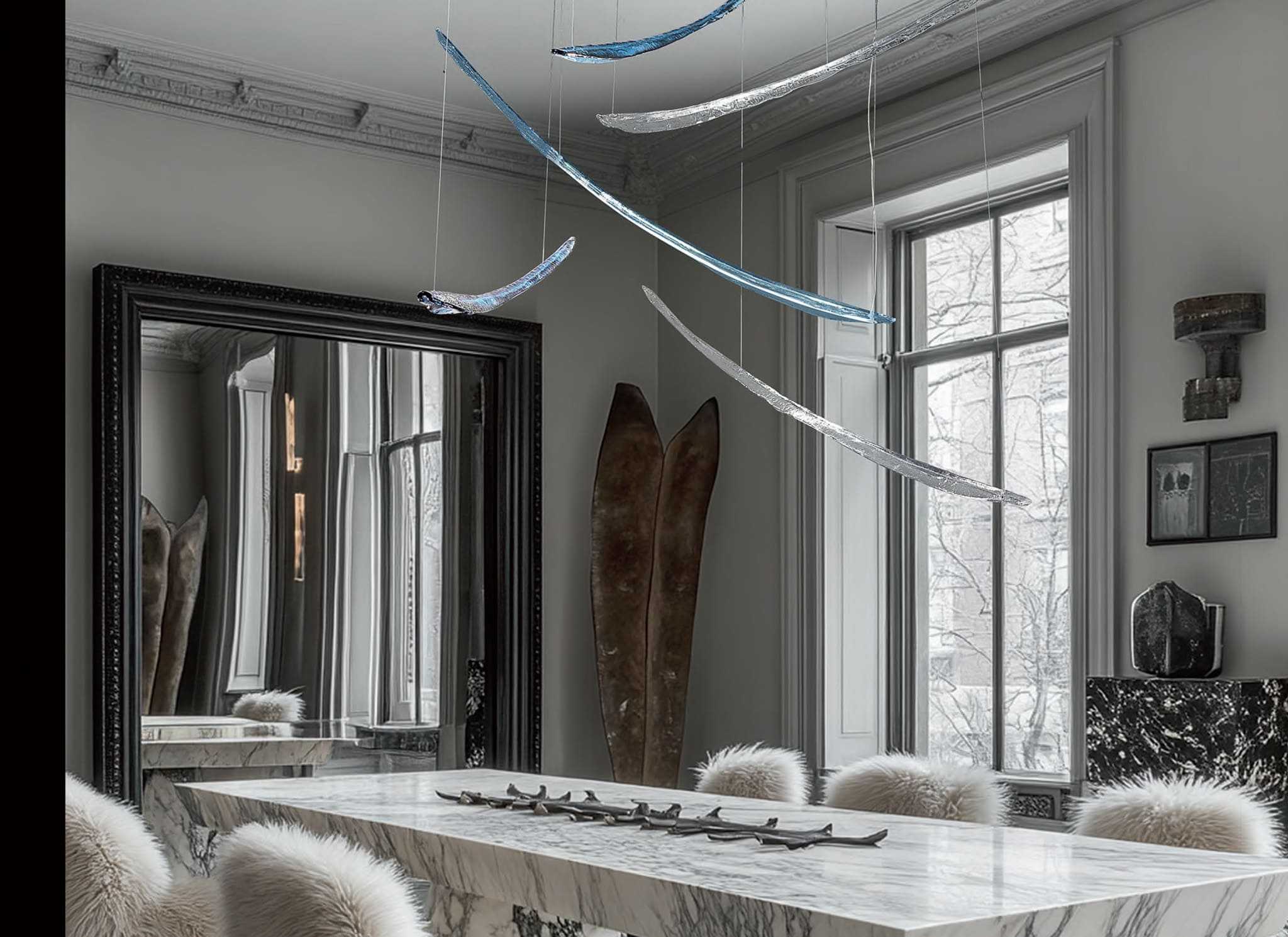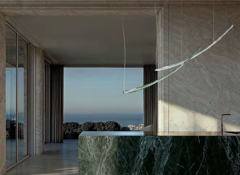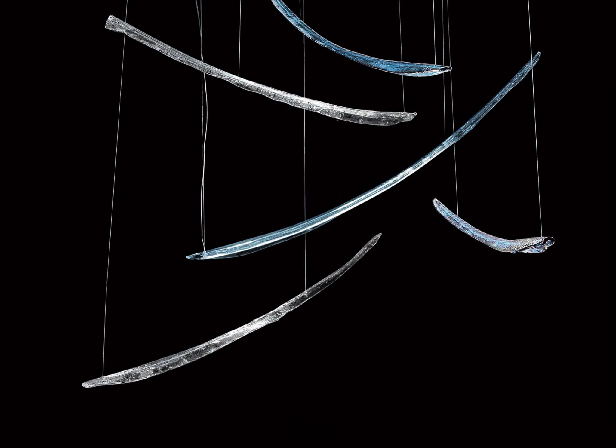 Sospensioni in vetro soffiato di murano, dalle linee morbide e sinuose.