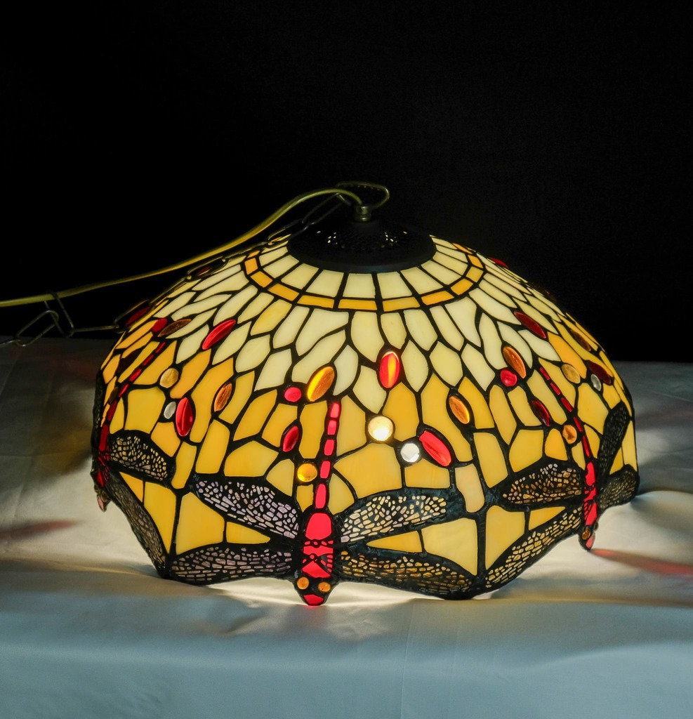 - Diffusore: Lavorazione vetro tiffany americano avorio con inserti di gemme colorate