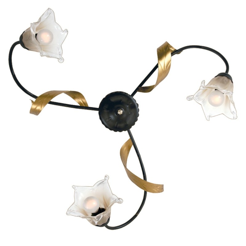 Le lunghe foglie delle montature in metallo verniciato ruggine e oro antico creano un movimento armonioso e piacevole.
