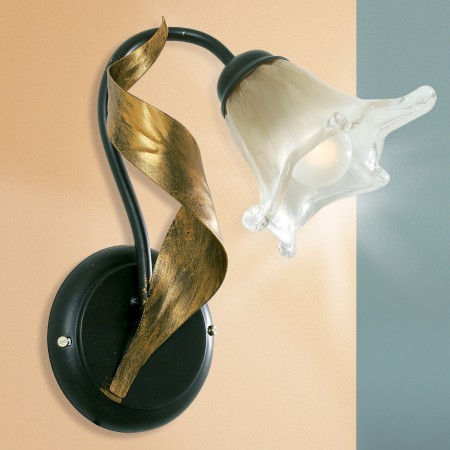 Le lunghe foglie delle montature in metallo verniciato ruggine e oro antico creano un movimento armonioso e piacevole.