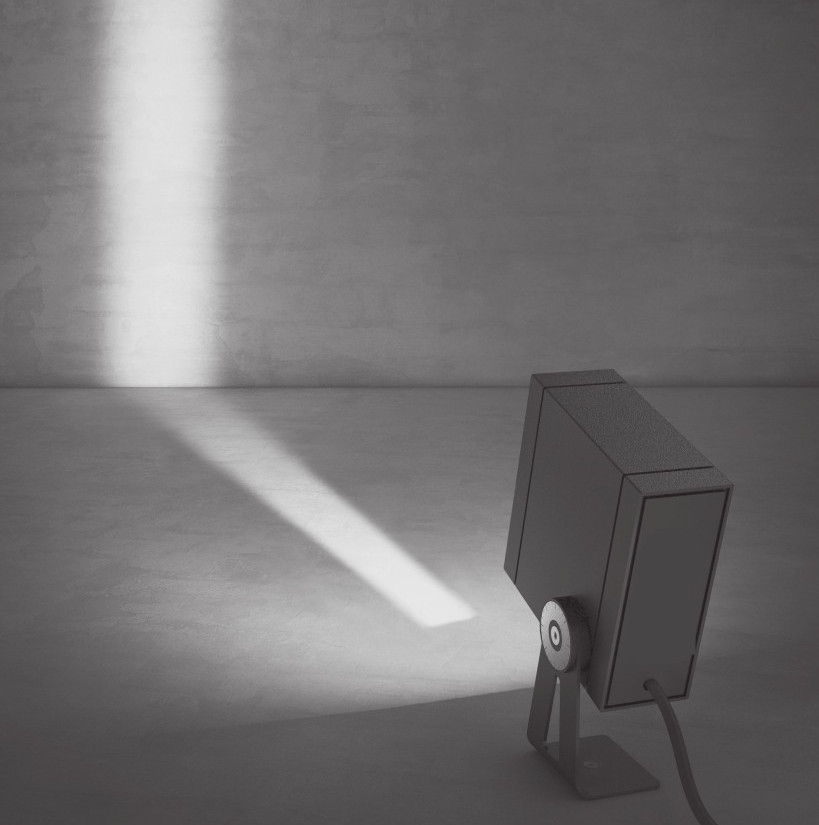 Un semplice parallelepipedo, dalla linea minimale e dalle dimensioni compatte, non più di 11cm. In grado di essere proiettore, in verticale o in orizzontale, oppure wallwasher a parete, o downlight a soffitto, o anche elemento a sospensione per interni, fino a diventare un sistema a paletto, orientato in funzione delle esigenze