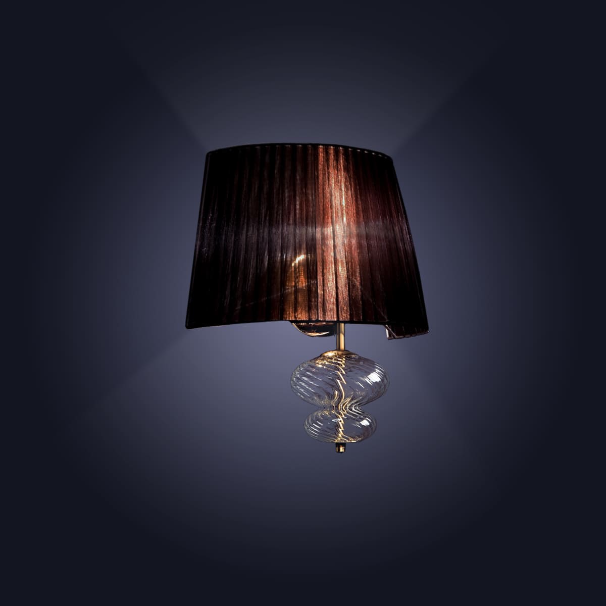 Un grappolo di vetro combinato con stupendo paralume plissetato artigianale. Caratteristica del vetro rigato ritorto dona un design esclusivo ed elegante.