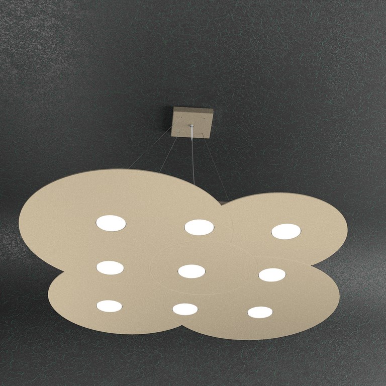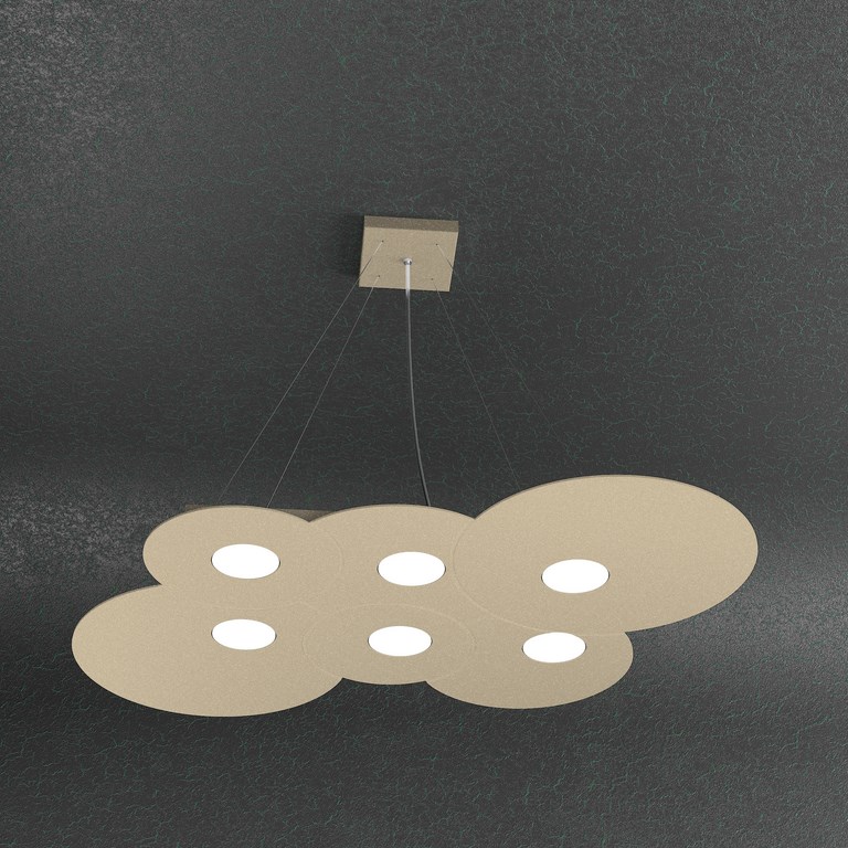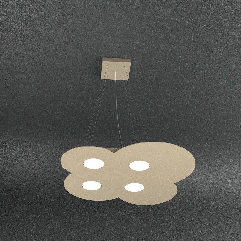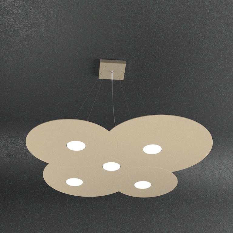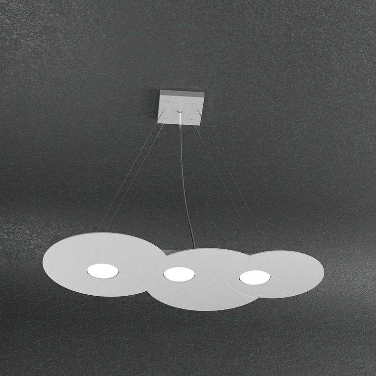 Collezione di lampade a plafone e sospensione realizzate con lastre di metallo sulle quali sono state effettuate delle lavorazioni di fresatura che creano giochi di cerchi sovrapposti.