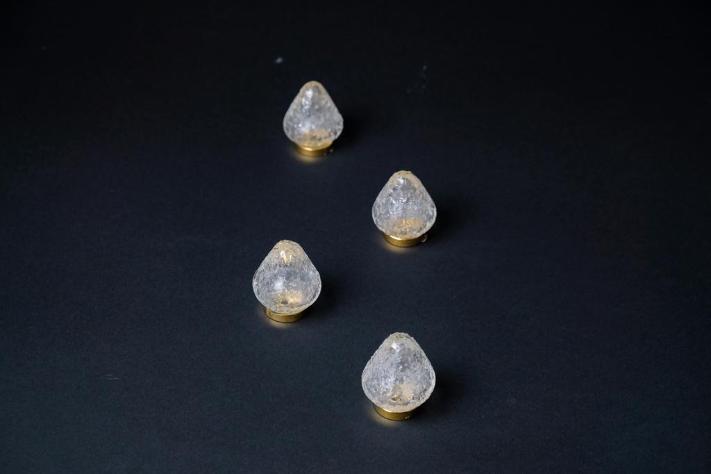 Colori : Cristallo con graniglia Metallo: Rifinitura metallica dorata Vetro : Soffiato lavorato nella tecnica veneziana Montaggio: Idoneo per barre filettate da 1cm