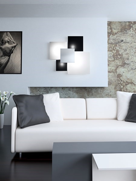 Collezione di Plafoniere di design in vetro a lastre bianco o colorato.