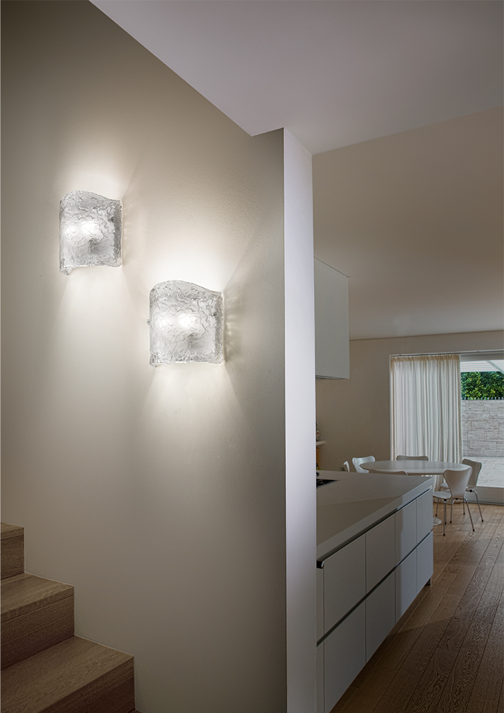 Le caratteristiche sfumature opache sono ottenute per mezzo della sabbiatura che riveste di pigmenti vitrei la superficie trasparente del diffusore.