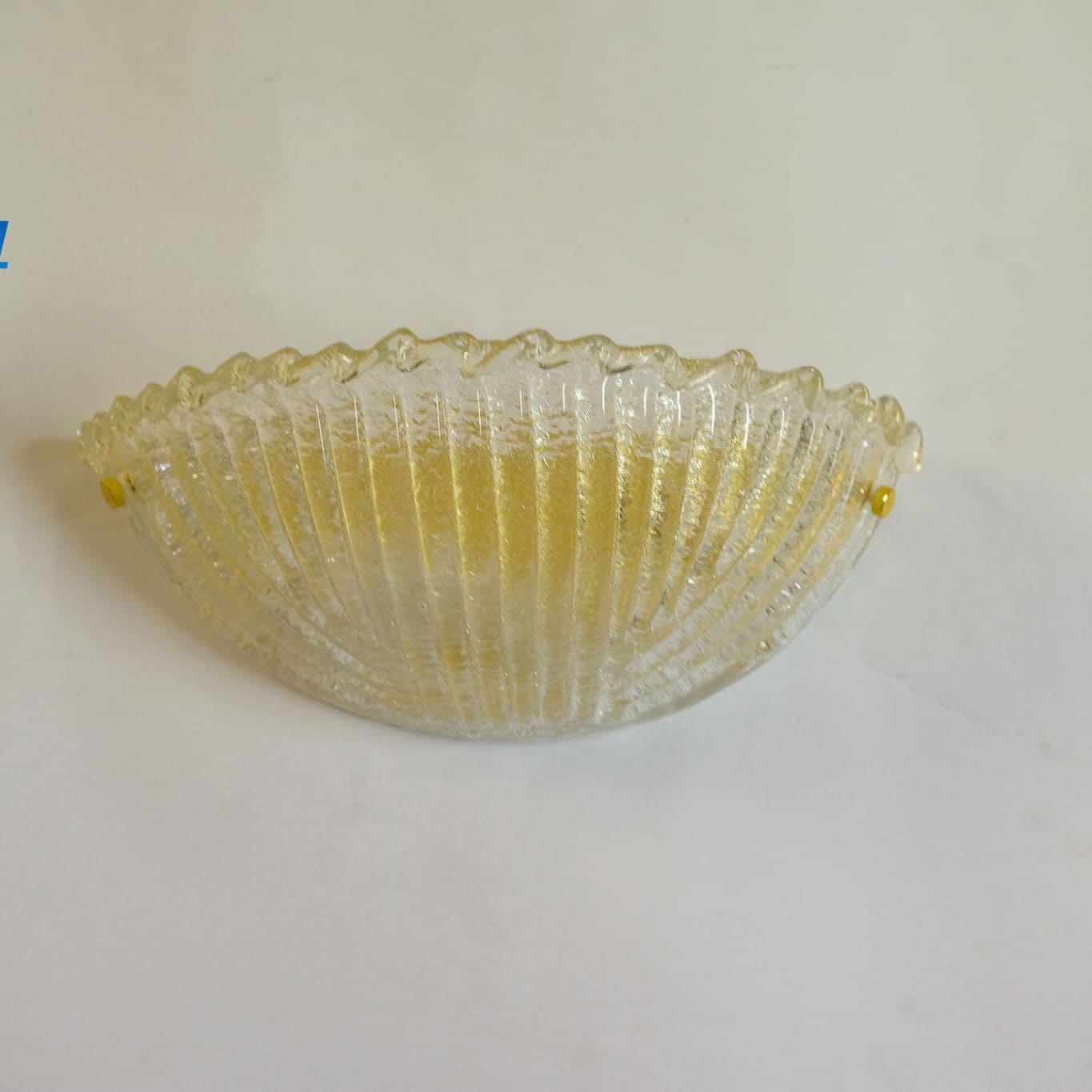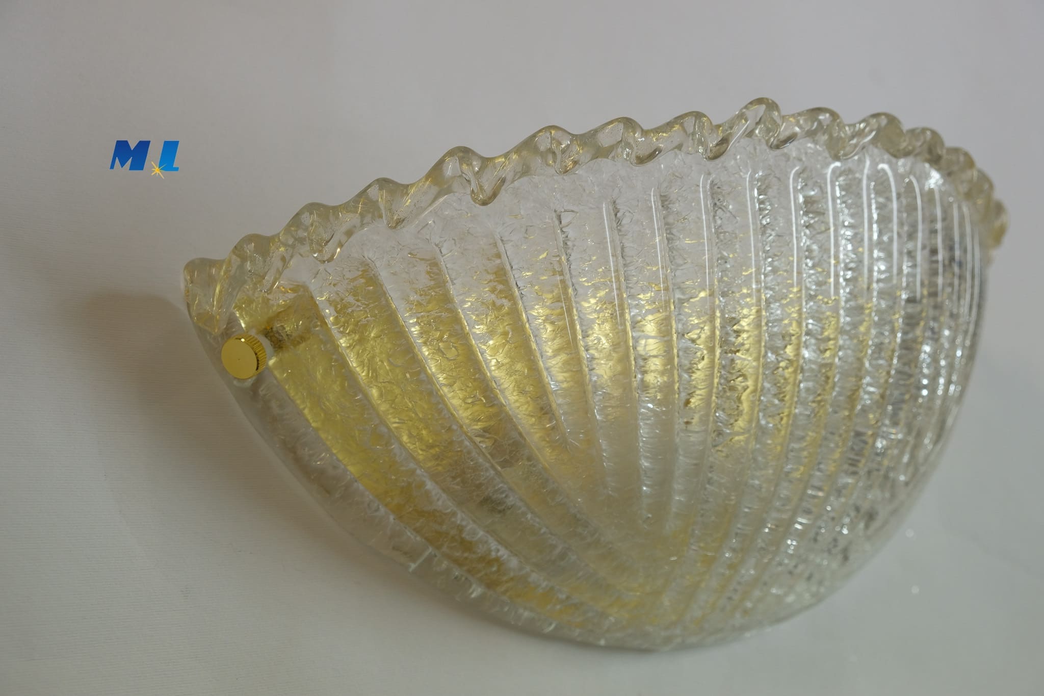 Lampada da parete in vetro di Murano color cristallo con il bordo in morrise color oro