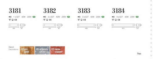 - Versione Vetro Decorato Pastello: Bianco, Avorio, Ambra, Giallo, Zucca, Arancio, Verde Oliva, Verde Natura, Rosso, Amaranto, Lilla, Viola, Marrone, Blu, Nero, Argento